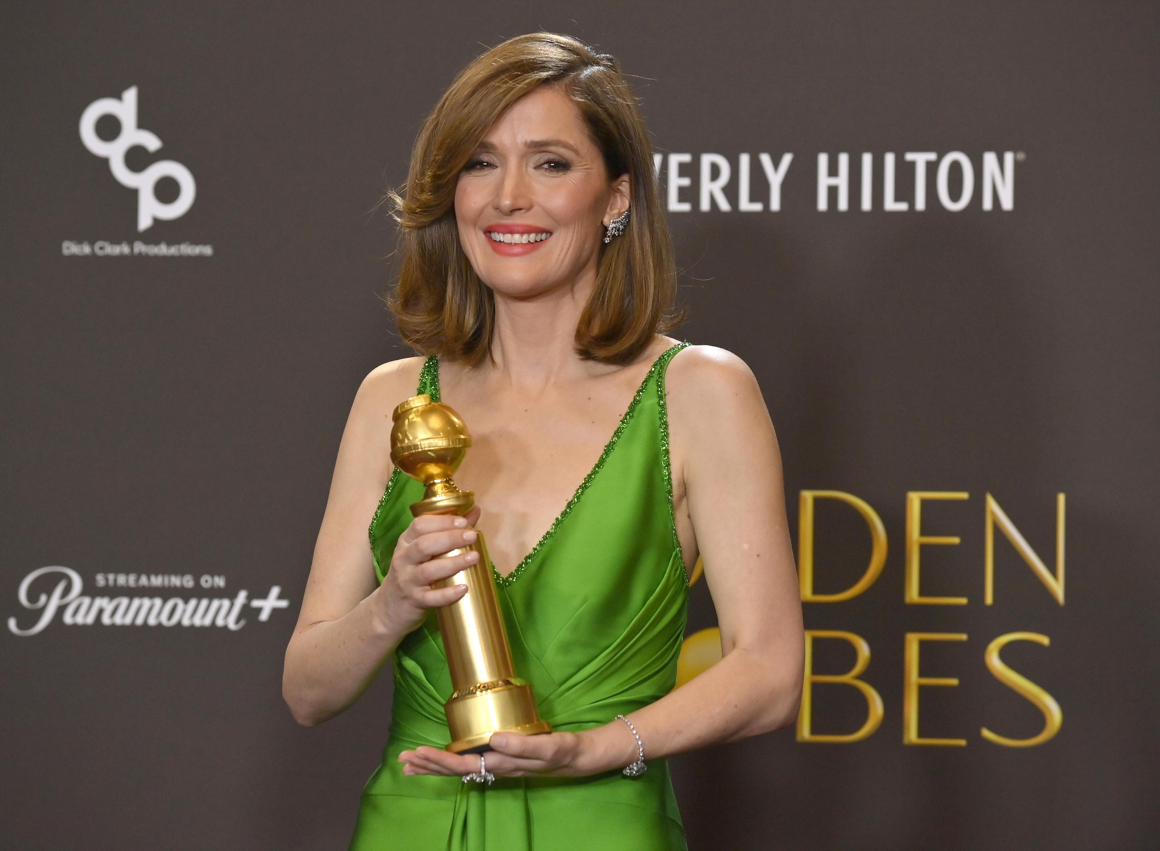 Роуз Бирн, ставшая лучшей актрисой в комедии, объяснила отсутствие мужа, актера Бобби Каннавале, важной миссией — он отправился на выставку рептилий в Нью-Джерси, чтобы выбрать бородатую агаму для семьи.