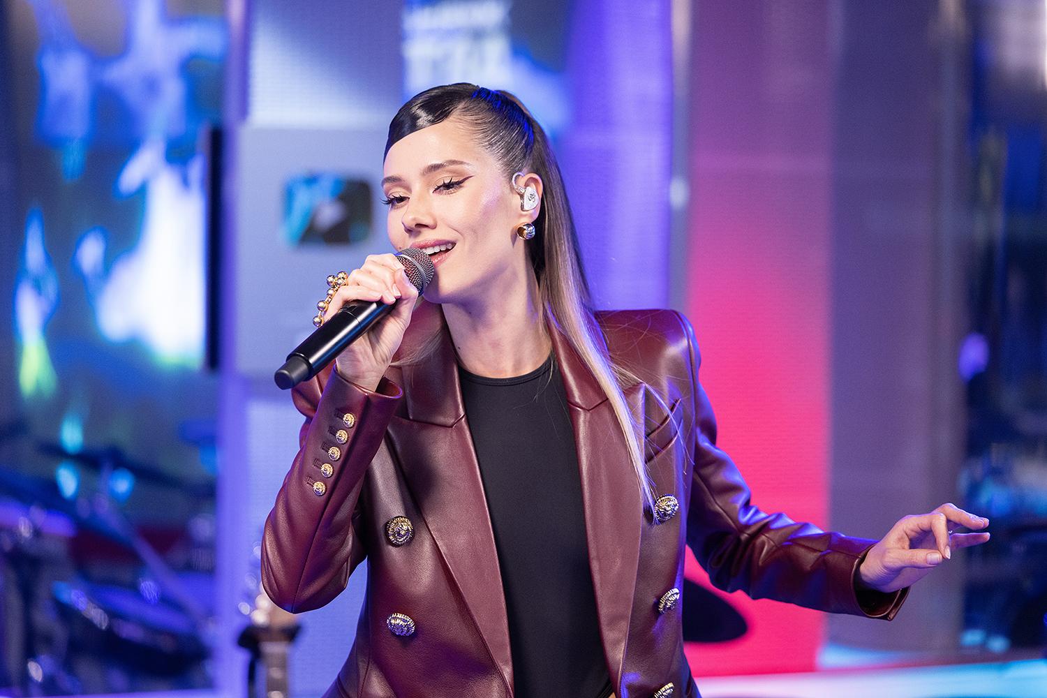 Крупные золотые серьги, массивные кольца, продуманный макияж и укладка — каждая деталь работает на образ женщины, которая знает себе цену и не боится быть услышанной. Впрочем, главное в этот день происходило не снаружи, а внутри. На «Авторадио» Юлия впервые исполнила новую песню «Перегорела» — историю, которая родилась из личного опыта.